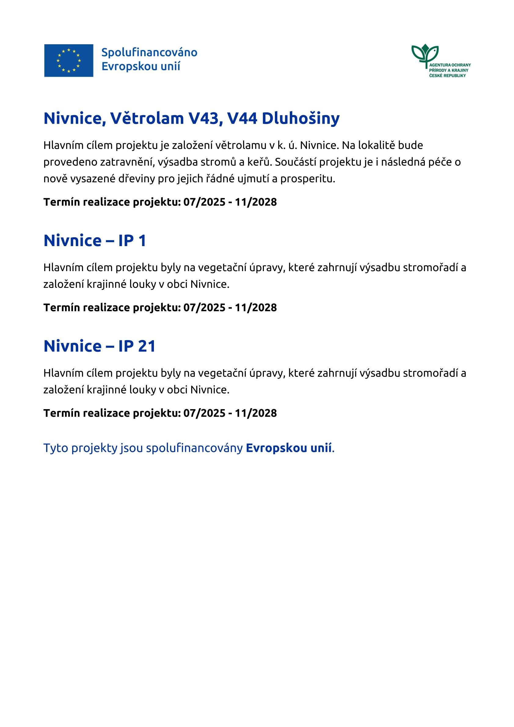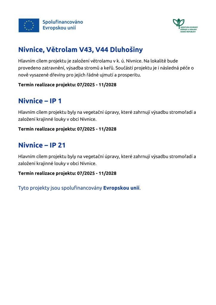 PROJEKTY SPOLUFINANCOVÁNY EVROPSKOU UNIÍ